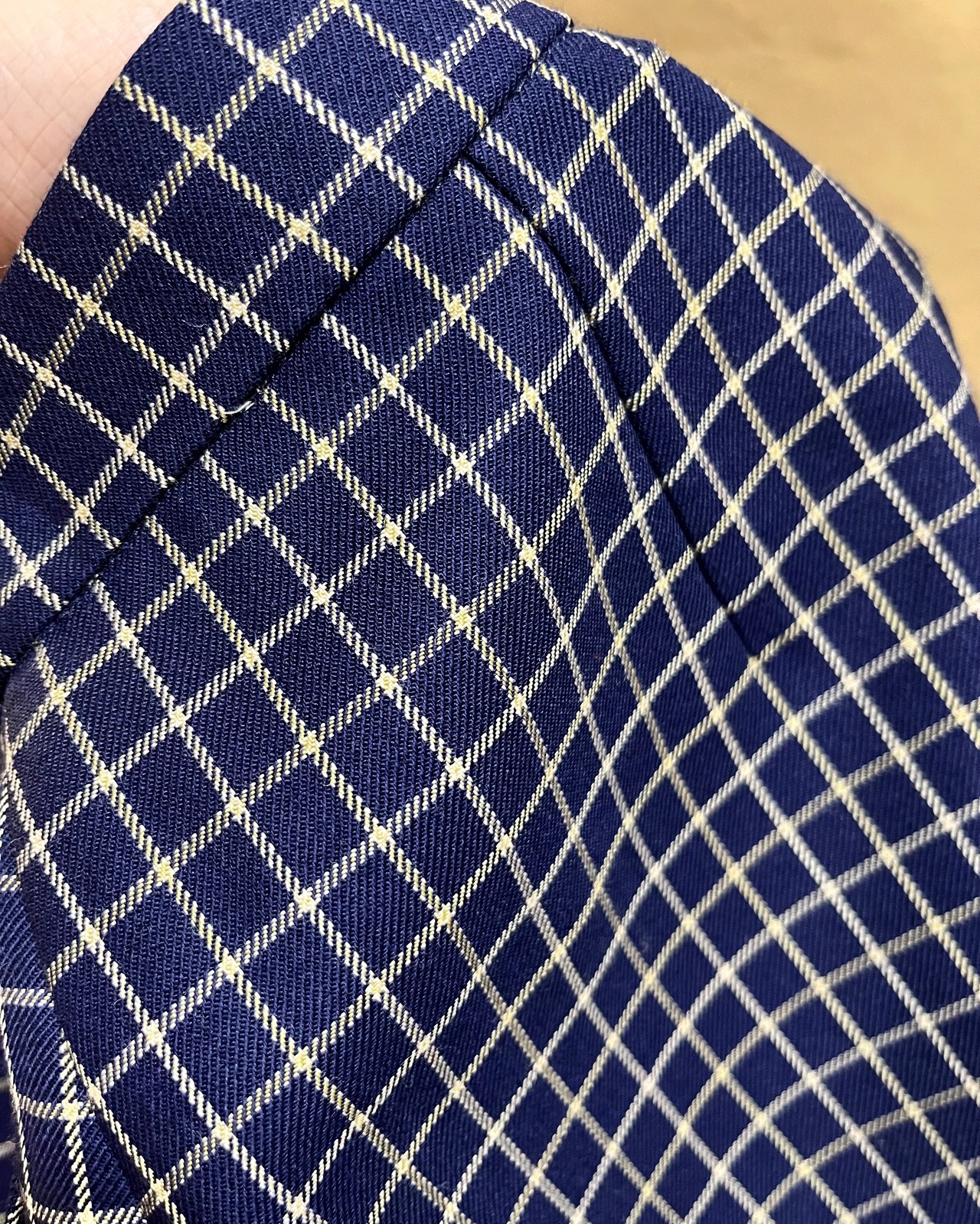 白と薄い黄色のチェック柄です。